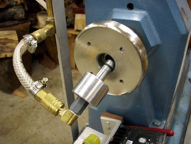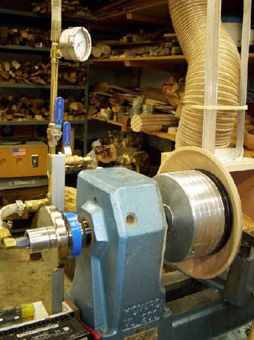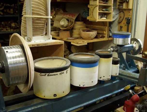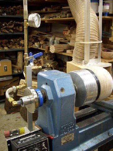 My Vacuum System on the Lathe with a OneWay chuck and home made chucks and vacuum adapter made by JTTurningtools.